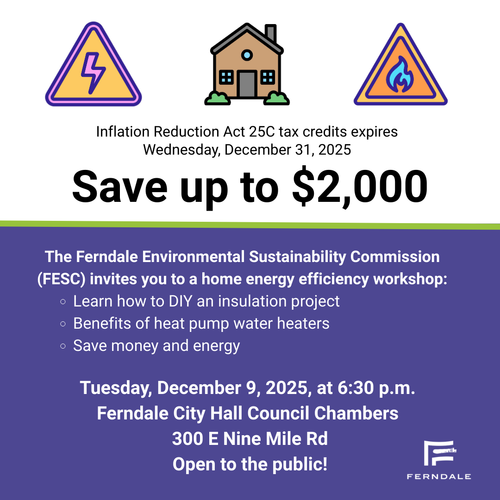Discover how to make your home more energy efficient at the free Energy Efficiency Workshop, hosted by the Ferndale Environmental Sustainability Commission. Mark your calendar for 6:30 p.m. on Tuesday, December 9, 2025, at Ferndale City Hall in the Council Chambers.