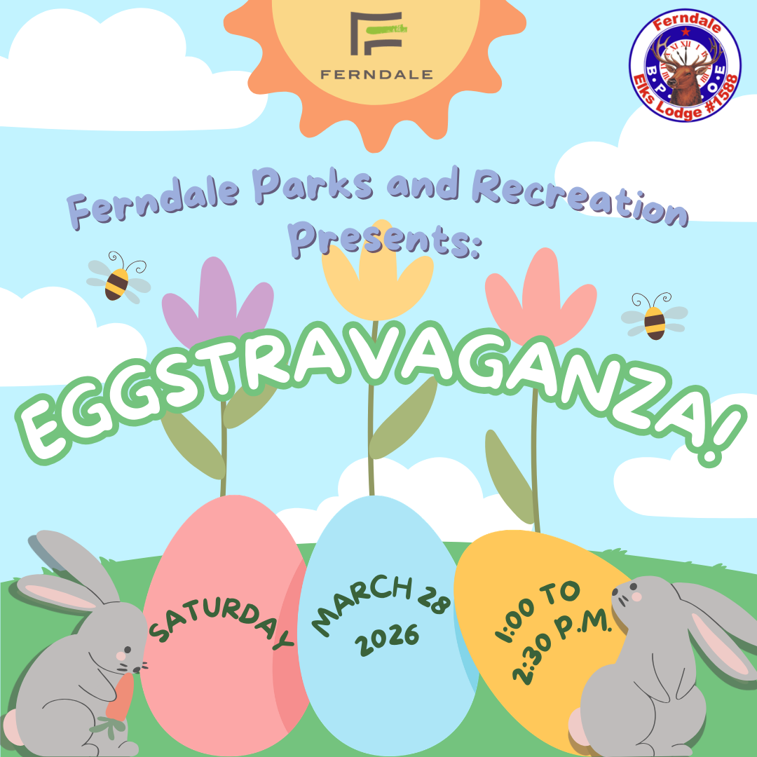 Celebrate the season with free goodie-egg hunts at three Ferndale parks! Find the right age group for your little ones, then let them loose to gather as many eggs as they can grab! Find the special egg with a golden ticket inside to win a prize-filled basket. Don’t miss the Easter Bunny—hopping in for an appearance at Martin Road Park!