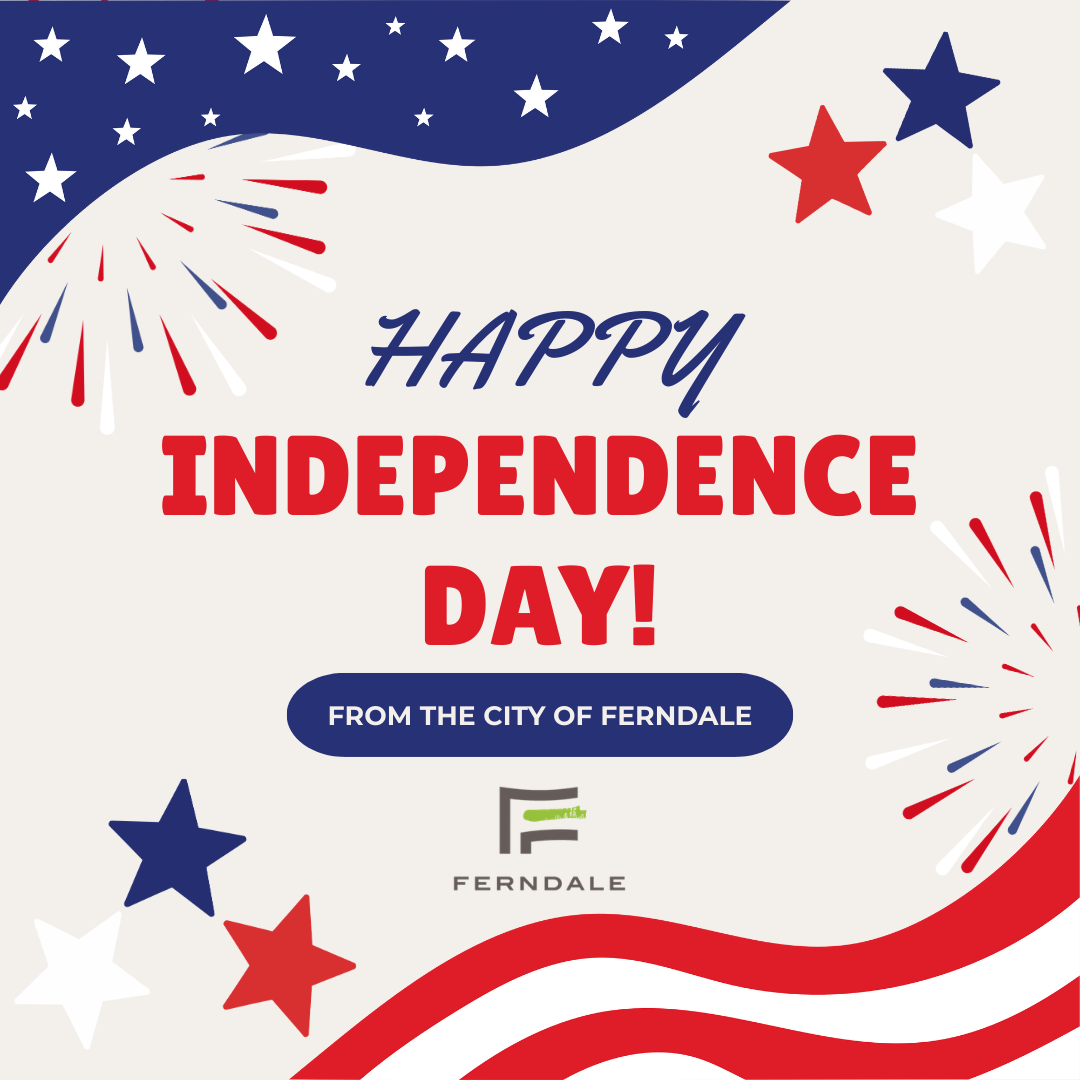 City Hall is closed on Saturday, July 4, 2026, in observance of Independence Day. Garbage and recycling collection will not be affected. Parking is free in Downtown Ferndale.