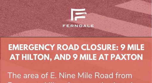 3:21 p.m. UPDATE: The road has reopened. As of 2:00 p.m. on Wednesday, March 18, 2026, the area of E. Nine Mile Road from Paxton to Hilton is currently closed. We apologize for the inconvenience and thank you for your patience!