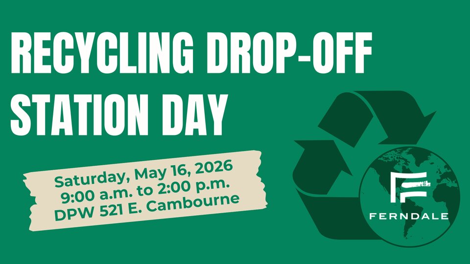 Clean out that clutter and bring your recycled items to the Ferndale Department of Public Works, located at 521 E. Cambourne in Ferndale, MI 48220. The event is on Saturday, May 16, 2026, and will run from 9:00 a.m. to 2:00 p.m.