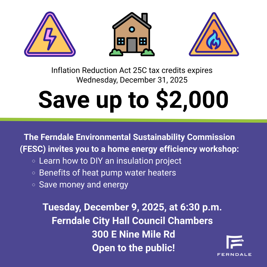 Discover how to make your home more energy efficient at the free Energy Efficiency Workshop, hosted by the Ferndale Environmental Sustainability Commission.