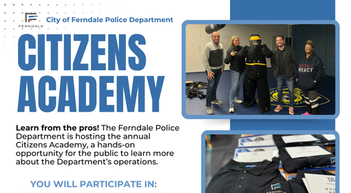Spots are open for the Citizens Academy! Discover the inner workings of the Ferndale Police Department through engaging talks, hands-on demonstrations, and interactive activities.