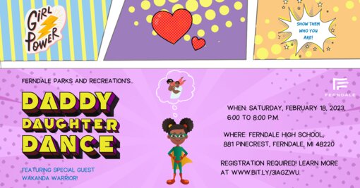 Join Ferndale Parks and Recreation for the return of the annual Daddy Daughter Dance on Saturday, February 18, 2023, at 6:00 p.m. at Ferndale High School!