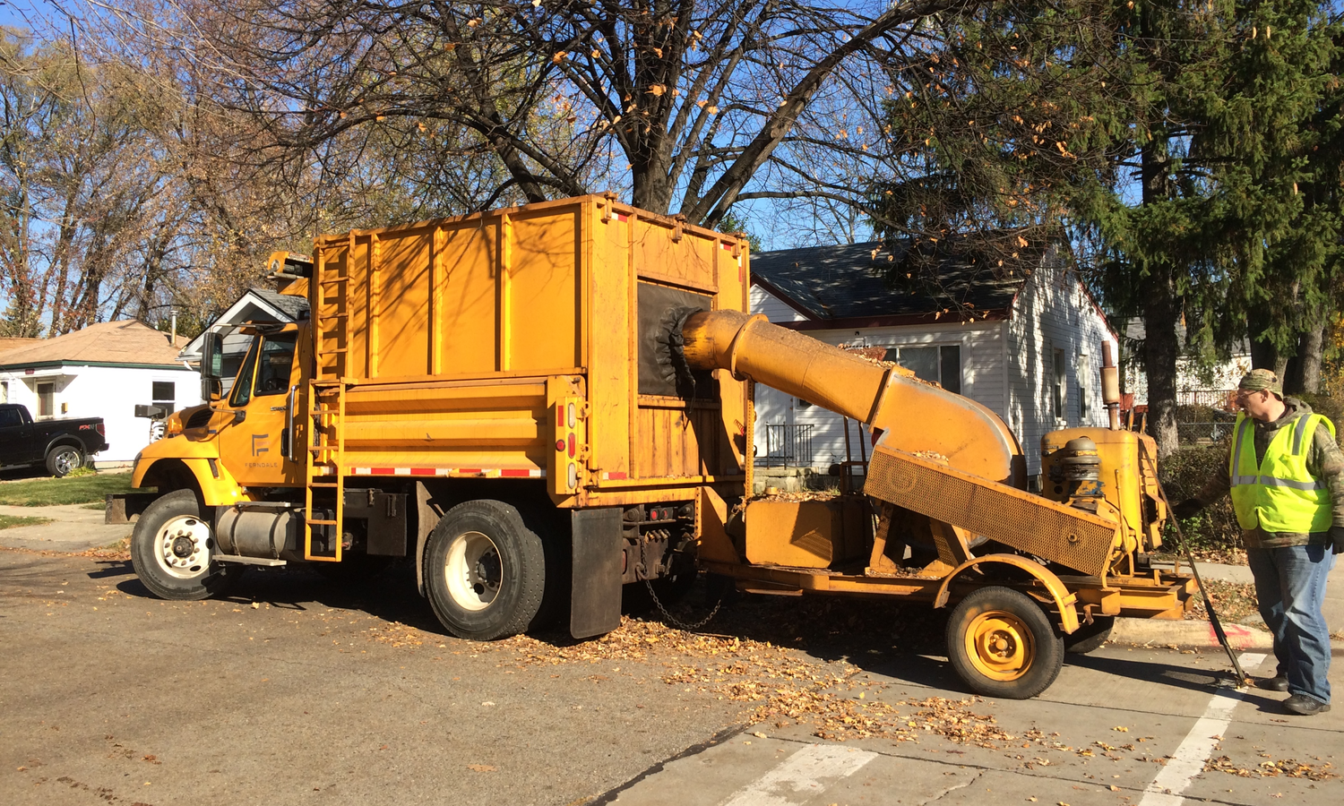 Our Department of Public Works (DPW) services all Ferndale residences. Simply rake your leaves to the curb by 7:00 a.m. on the Monday of your scheduled week's pickup and DPW will be by before the end of the week to vacuum them.